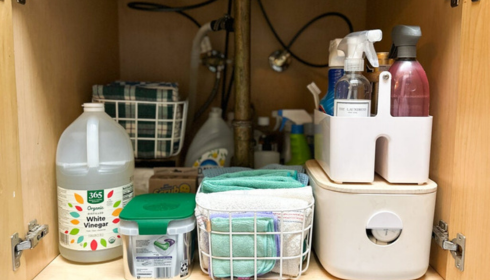 When cleaning supplies are scattered—one spray in the bathroom, wipes in the kitchen, cloths in some drawer—you’re less likely to deal with small messes right away. It’s effort to assemble everything, so you postpone.